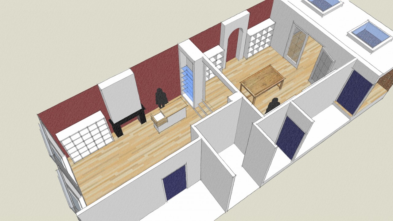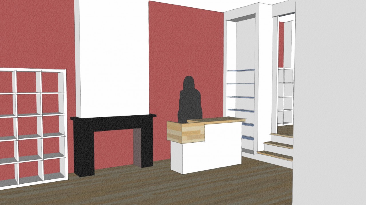 Dat SketchUp een heel handig programma is voor het ontwerpen in 3D is vrij algemeen bekend. Zelf werk ik naast AutoCAD ook regelmatig met SketchUp. Recent moest ik even wat schetsen aan een mogelijke winkelinrichting. Op basis van enkele globale maten uit een brochure en een paar foto’s kon ik een basismodel maken. Op dat moment is SketchUp echt sneller dan AutoCAD, ook omdat je diverse inrichtingselementen gewoon uit de internationale bibliotheek kunt downloaden. Op die manier maak je in een paar uur een heel knap plaatje. Door het interieur vanuit meerdere punten te bekijken geeft het ook voor een leek al snel een duidelijk beeld. Kleuren toevoegen en wijzigen gaat zo simpel dat het haast jammer is om sommige delen wit te laten.